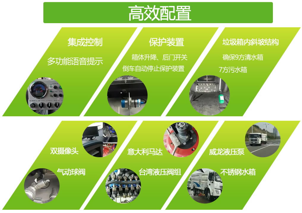 1、采用吸掃結(jié)合的方式收集垃圾,濕式除塵、電液控制,液壓傾翻卸料的作業(yè)方式對路面進(jìn)行清掃作業(yè)。