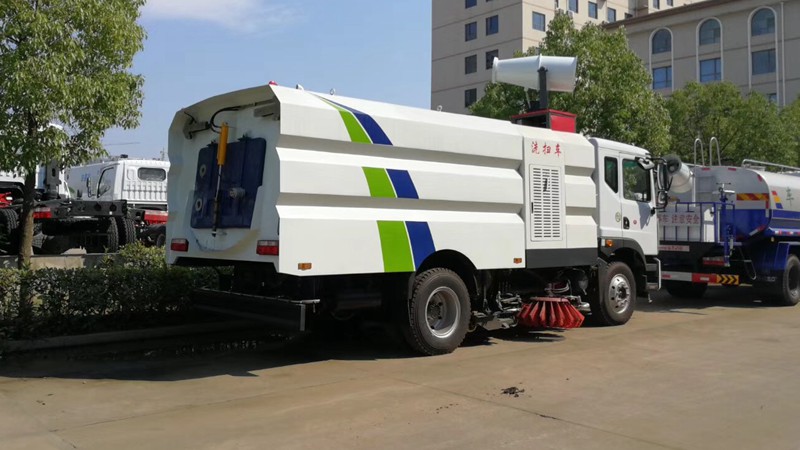 上裝配置: 1、帶2個(gè)中置掃盤;中置超寬吸嘴;雙層吸塵筒;康明斯170馬力副發(fā)動(dòng)機(jī);臺(tái)灣液壓閥;大力馬達(dá);德國(guó)高壓水泵(前沖/側(cè)噴/中噴/后噴霧)/側(cè)沖洗水槍/垃圾箱自潔裝置);萬(wàn)向高壓路沿清洗;威龍低壓泵(前沖),氣動(dòng)球閥控制;4mm不銹鋼垃圾箱;不銹鋼水箱;德國(guó)控制器;尾部箭頭燈;機(jī)油、垃圾箱、水箱均帶防溢或低位報(bào)警裝置;倒車及洗掃狀態(tài)室內(nèi)監(jiān)視器;多種語(yǔ)音提示;倒車自動(dòng)保護(hù)、防傾倒垃圾翻車保護(hù)、檢修安全保護(hù);20m高壓沖洗卷盤;刷臂轉(zhuǎn)動(dòng)機(jī)構(gòu)使用德國(guó)進(jìn)口高新耐磨工程隔套,免打黃油;精密冷彎無縫液壓油管;運(yùn)動(dòng)控制器一鍵電腦控制。 ![]() 產(chǎn)品功能特點(diǎn)
